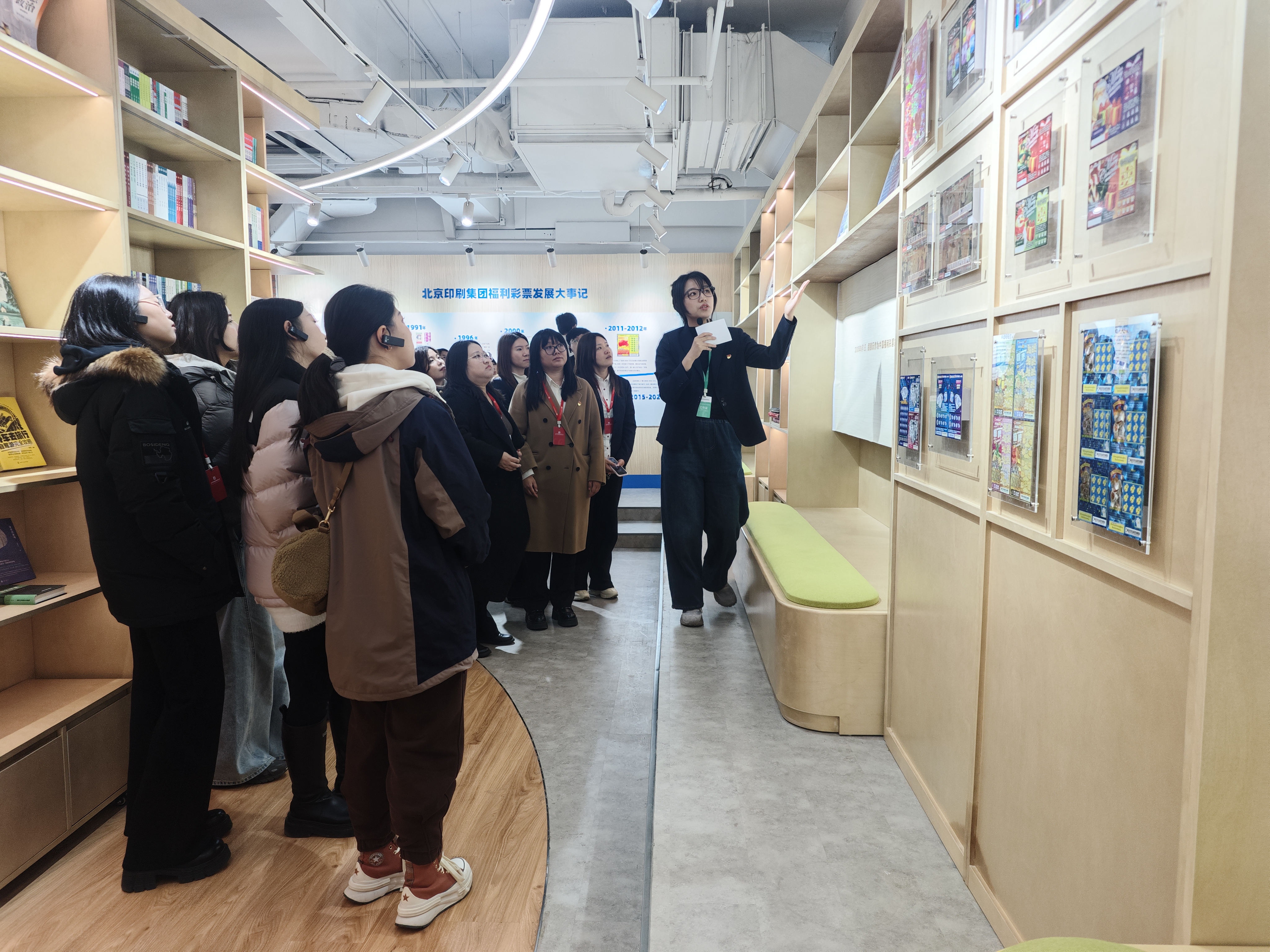 参观现场,团员青年们跟随讲解员参观了智慧印刷产业园展厅,从陈列的彩票票样、精品图书、创意包装和专利证书领略印刷集团七十余载发展历程;印刷技术研究所中,经理陆自立详细介绍了复制画、加热画等传统工艺和现代印刷技术巧妙融合的创新产品生产过程;在出版物制作中心,质控大屏上实时跳动的数据、机械臂精准的码垛操作及数码生产线的自主运转,生动展现了传统制造业向数字化转型升级的实践成果。