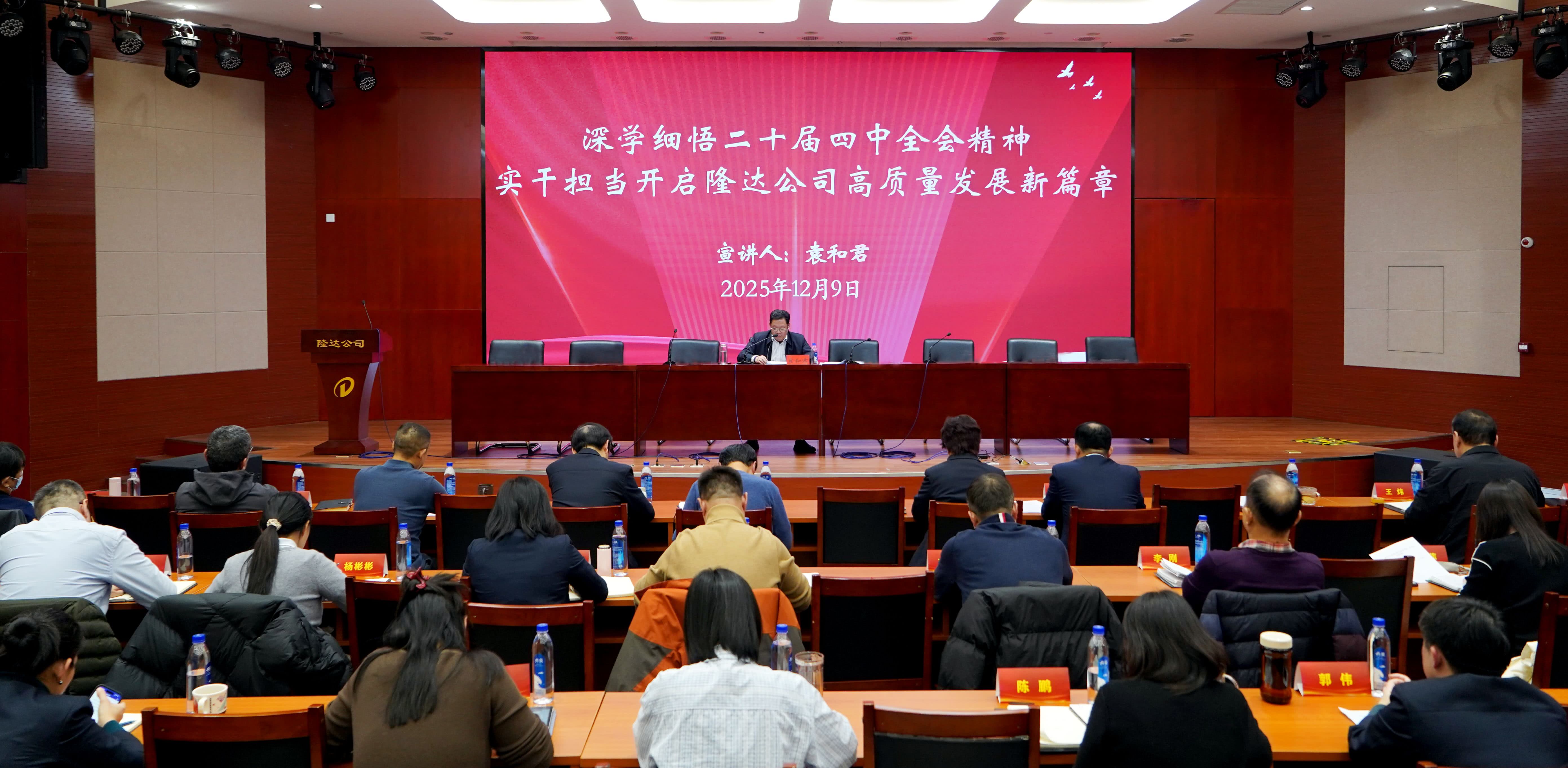 为深入学习宣传党的二十届四中全会精神,12月9日,隆达公司党委书记、董事长袁和君以《深学细悟党的二十届四中全会精神 实干担当开启隆达公司高质量发展新篇章》为题,宣讲党的二十届四中全会精神。